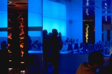 LAUNCHPAD The Art space Entry to NUTOPIA is via Launchpad, a platform for designers using new technology. Launchpad's first exhibition features the light emitting sculpture of Paul Friedlander. The top picture shows view from Launchpad through to the Multimedia workspace. The picture below shows a detail from Friedlander's work LIGHTWAVE. Adjoining Launchpad is an organic juice cafe where customers can socialise with friends or wait to go on-line.