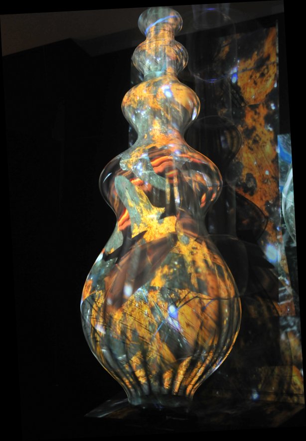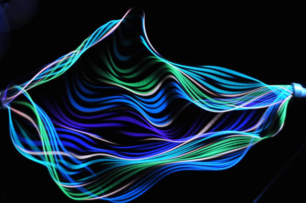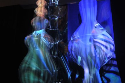 Whilst researching the problem of 3D projection, I made a serendipitous discovery, which has become the subject of numerous light sculptures both small and large. You can download a video of me playing with a hand held version of this invention. The work on show is based on the small hand held light sculpture. The name of this particular piece, Wave Function, refers to the central idea in quantum mechanics first introduced by Schrodinger. The discovery of the wave function leads us inevitably towards a view of reality that cannot be consistent with a classical notions of what it means to exist.