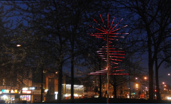 Ten metre high light sculpture to be permanently sited in an open space in East London commissioned by Splash Arts in association with Tower Hamlets Council.